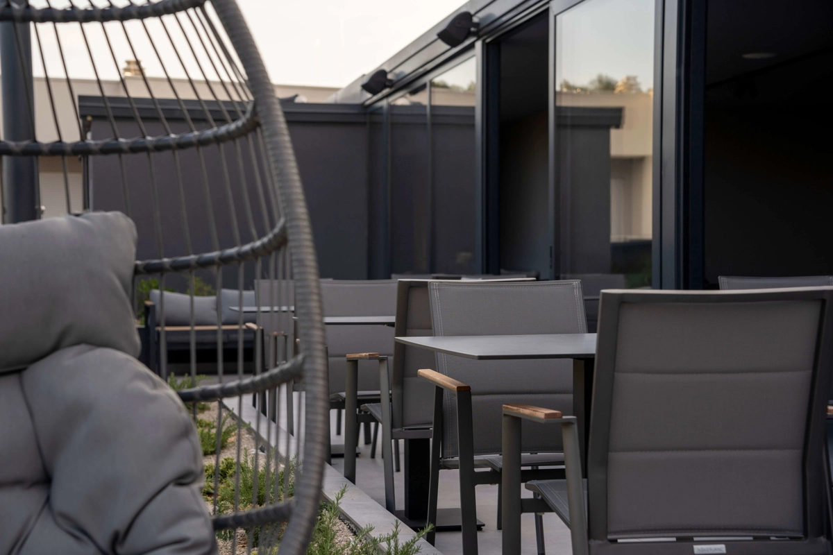 B&B MORO INN sadrži 30 modernih i komfornih smještajnih jedinica od kojih je 8 comfort soba s pripadajućom terasom/vrtom, 2 suites soba i 20 standard soba. B&B MORO INN nalazi se 15 minuta hoda od starog grada Korčule 4 minute hoda od hotelskog naselja Port9 i 3 minute hoda od trajektne luke. Sa glavne ceste Dominče Korčula skrenuti na 2 skretanju lijevo i nakon 100 m se nalazite ispred objekta. Objekat posjeduje privatni parking za 20 vozila i autobus te 2 punjača za el. vozila. Krovna ter...